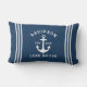 O travesseiro decorativo "Lake House" de velo náutico apresenta uma âncora e listras design. Personalize o texto personalizado com um sobrenome familiar + casa do lago (ou outro título) com o ano estabelecido. Esquema de cores azul e branco do marinho clássico. Tecidos para travesseiros interiores e exteriores disponíveis.