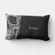 Macabro gótico, textura escura e esbranquiçada impressão metade do crânio travesseiro decorativo retangular lombar. Uma decoração estranha, assustadora, mau, sinistra e única da sala de estar. Personalize seu script. Legal, moderno Halloween inspirou design. Imagem copyright Marg Seregelyi Fotografia.