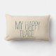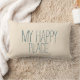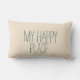 Corte meu feliz lugar azul e bege adormecendo no grau A Travesseiro decorativo de algodão Lumbar 13" x 21".