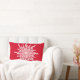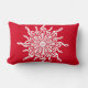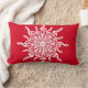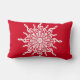 Travesseiros decorativos musicais únicos para músicos e amantes da música nas férias de inverno. Derreter clefs brancas formam um floco de neve feito de notas de clef triplas. Use o modelo de texto para adicionar um inicial ou um monograma ao meio do design ornamental. Edite para mudar o fundo vermelho natalino, a borda do círculo central e a fonte elegante e antiga para qualquer cor que desejar. ♡ Idyllfire