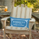 design lombar na moda apresenta um design geométrico geométrico branco grego-chave e um monograma que pode ser personalizado com um sobrenome casado ou familiar, data estabelecida (pode ser o ano de casamento ou o ano em que o primeiro filho foi nascer). Personalize o fundo azul cobalto para coordenar com o seu decor externo.