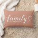 O design de travesseiro decorativo lombar personalizado moderno e na moda apresenta uma tipografia simples e mínima "Família" que inclui detalhes florescentes e cardíacos. Personalize o texto em maiúsculas abaixo com um monograma ou ano estabelecido. As cores laranja de argila branca e mudada podem ser modificadas.