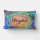 Este travesseiro decorativo apresenta um padrão de mosaico brilhante que captura a coloração e o padrão únicos de uma concha de abalone polida junto com o seu nome. As espirais vibrantes cor laranja, lacre e roxa ao redor do centro desta foto, destacadas tanto na frente como no verso deste travesseiro. Seu nome aparece contra os azulejos laranja brilhantes e pode ser facilmente personalizado na tela de pedido.