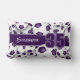 Este legal travesseiro lombar para um jogador de futebol apresenta dimensões variadas, bolas roxas e brancas de futebol viradas em todos os sentidos em um fundo branco e número de camisa proeminente em roxo sobre uma faixa de cor roxa de comprimento de cheio, na qual você também pode personalizar o nome do atleta em branco - o verso do travesseiro tem uma versão maior do padrão das bolas de futebol sobre um fundo roxo - por katsimilz_d_d_zynes - toalhas de mão velhas para jogadores de futebol podem ser encontradas em katz_d_zynes's Team name toels & water bofrings coleção >>>> https://www.zazzle.com/collections/119856912745827517