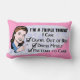 A mulher sassy dos anos 50 neste travesseiro engraçado é de sorriso e dizendo, "eu sou uma ameaça tripla. Eu posso: O rastejamento fora da cama, veste-se, finge importar-se." Há poucas caixas de verificação ao lado de cada repto que surpreendente pode realizar. No fundo, há uma forma fraca do Bumerangue com poucas formas retros da estrela nela. Este design cómico é para toda a pessoa cínica, apática que apreciar desenhos do snark/sarcasmo e do vintage. A imagem da mulher é derivada de uma imagem velha, mas redone e foi colorida e feita neste design legal, original. A cor cor-de-rosa do fundo é customizável em ambos os lados do travesseiro.