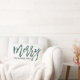 Este design de travesseiro de feriado simplesmente "Feliz" apresenta um design de script verde-escovado e um texto moderno de nome de família monograma personalizado em preto suave.