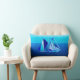 Travesseiro em uma pintura digital geométrica moderna do século Médio de um veleiro / iate em tons de azul oceânico, do aqua leve ao cobalto profundo