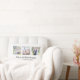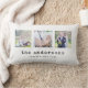 Almofada com 3 fotos quadradas dispostas lado a lado na frente e atrás, totalizando 6 fotos que você pode substituir por suas próprias fotos em um fundo branco. Você também pode adicionar o nome da sua família em uma fonte de máquina de escrever estilosa e o ano de fundação. Perfeito para decoração de casa, recém-casados, lembranças da família, etc.