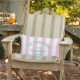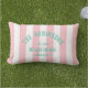 O travesseiro decorativo personalizado perfeito para sua casa de praia... Listras cor-de-rosa com o logotipo da casa de praia da família especial Miami. Personalize com os detalhes da sua casa de praia... nome familiar, ano estabelecido e local. A adição perfeita à sua casa de praia, sala de jardim, poolside ou para trazer um pouco de conforto à praia! Acessórios correspondentes disponíveis na Family Beach House Pink Cabana Stripe Collection.