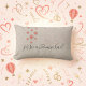 Travesseiro romântico personalizado para casais. Os nomes do casal são impressos em letra de caligrafia com tinta preta e conectados por um coração espiralado fofo. O resto do design é feito de muitos pontos vermelhos e corações charmosos pendurados em cordas. A cor bege terrosa e a textura de falso burlap dão a este belo acessório para casa um visual e sensação rústicos. A paleta de cores neutras torna fácil misturar e combinar com a maioria dos estilos de decoração de casa. Este belo travesseiro do amor é feito para celebrar um casal e seu amor. Perfeito para usar como presente de casamento, presente de aniversário. Também é uma ótima ideia de presente para o Dia dos Namorados.