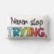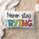 Descubra o belo e inspirador travesseiro lombar "Nunca Pare de Tentar". Adicione um pouco de motivação e conforto ao seu espaço com este acessório único e na moda.