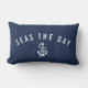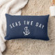 Ahoy! Marque com nossa bela praia inspirada no travesseiro decorativo náutico clássico azul e branco marinho. A design apresenta o "mar o dia" em caracteres brancos modernos curvos sobre uma corda náutica e ilustração da âncora.