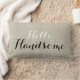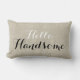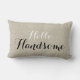 design de chic contemporâneo, com texto preto. travesseiro decorativo motivacional com as palavras "Hello Handsome". Um fundo de efeito fotográfico de linha bege IMPRESSO. Linen Parecem Um Estilo De Vida Personalizado - Conselhos Positivos - Travesseiro decorativo - Para Suas Soluções De Decoração Doméstica. Elke Clarke© Mais estilos e cores disponíveis em nosso compro em www.zazzle.com/monogramgallery. Excelente para o seu quarto, cadeira favorita, como decoração divertida na sua sala de estar ou adição decorativa formal à sua sala de estar.