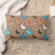 Travesseiro lombar com um padrão paisley minimalista e moderno, realçado com pontos - tons de bronzeado, ferrugem, creme e turquesa, sobre um fundo castanho médio esticado