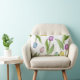 O design do produto apresenta um padrão de flores tulipas coloridas em roxo, vermelho, rosa, azul e amarelo. Esta ilustração botânica faz um elegante travesseiro lombar moderno e único - Ideia de presente para aniversário, Dia das Mães, casamento, e muito mais!