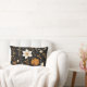 Almofada Lombar Padrão Dourado Floral do Boho de outono Preto