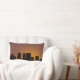 Uma linha do horizonte de uma grande cidade silenciada contra o sol da ascensão.