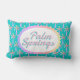 Esta Palma Primavera travesseiro decorativo Azul com palmeiras pastel é tão divertido! Matizes moles multicolores num fundo turquesa vibrante invocam a vibração moderna do século médio dos Primaveras de Palm do deserto, Califórnia. Você pode editar o texto com sua própria mensagem!