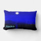 Moonrise na passagem de Dentro do casaco do Alasca. Montanhas à distância e um barco de pesca dirige-se para norte. A leitura de texto "Alaska" aparece em azul e branco brilhantes. Adicione o seu próprio texto adicional no verso.