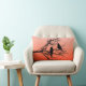 Travesseiro lombar retratando duas pequenas aves, empoleiradas em um galho, como uma silhueta preta contra um gradiente do céu ensolarado de laranja coral profunda a pastel