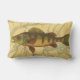 Esta impressão ilustra um quadro artístico de um peixe-perca amarelo. O plano de fundo exibe um mapa geográfico antigo em cores bege claro. A estrutura marrom se assemelha a um padrão antigo de madeira com flores amarelas-vermelhas nas bordas. Um excelente extra para a sua coleção de pesca!