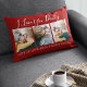 Esta almofada de fotos moderna na moda é o presente perfeito para o seu pai, padrasto ou avô para o dia de os pais. O travesseiro apresenta o texto 'EU AMO VOCÊ PAI, MUITO AMOR, HUGS & KISSES XOXOXO', mais 3 de suas fotos da família favorita, com o mesmo no verso. O texto é facilmente editado e os estilos, tamanhos e cores da fonte podem ser alterados clicando no link personalizar depois de personalizar.