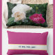 Travesseiro lombar com dois rosas creme e um lindo rosa cor-de-rosa. Certifique-se de personalizar o texto no verso. Agora lê: "Fique bem logo, Janie!" Boa maneira de desejar rápida recuperação a um colega de trabalho ou amigo em um hospital ou visita a casa. Observe que você também pode mudar a mensagem para outra coisa, como "Aproveite sua nova casa, Janie e Mike!" ou "Aproveite sua aposentadoria, Janie!"