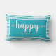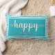 Você tem um lugar feliz que quer que todos saibam? Então, jogue fora este travesseiro decorativo alegre e personalizado com seu próprio nome de família, a citação "meu lugar feliz" em branco em um fundo de tartaruga e azul-turquesa, com a tendenciosa tipografia escrita com letra-mão. Fácil de personalizar com seu próprio nome de família. presente de Excelente para a família que tem um lugar feliz turquesa ou para a praia!