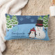 Celebre a festiva época de Natal com este travesseiro lombar de feriado. Travesseiro apresenta um pinguim num chapéu aconchegante de inverno, um sorridente boneco de neve, árvores cobertas de neve, flocos de neve brancos caindo e um lago azul gelado. Personalize com seu primeiro nome e o ano. Este travesseiro aconchegante será precioso para muitas estações de inverno que virão! Este travesseiro lombar também faz um chá de fraldas personalizado de excelente, aniversário, Natal ou outro presente de feriado, especialmente para uma criança ou família.