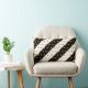 Travesseiro decorativo chic com pontos de ouro elegantes sobre fundo listrado preto e branco.