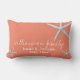 Personalize este travesseiro decorativo da casa de praia com três estrelas-do-mar costeiras num fundo moderno de coral leve, com o seu próprio sobrenome/nome de família em elegante escrita manuscrita, e o ano em que a família, a casa ou a casa foram estabelecidas. Perfeito para a nova casa, como presente de casamento, presente para um amigo, ou para sua casa de praia, casa de férias ou casa de praia. As cores de fonte e de fundo podem ser alteradas clicando em "Clique aqui para personalizar mais" na caixa de diálogo "Personalizar esta modelo". Entre em contato comigo se você quiser mais personalização com seus travesseiros! Fotografia do peixe-estrela e design por T.K. Todos os direitos reservados.
