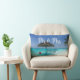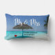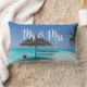 Um travesseiro de casamento desenhado com uma fotografia de uma praia tropical cênica nas Maldivas. Uma praia branca arenosa e águas azuis cristais com um guarda-chuva compacto a solo. Secudido e sereno. Personalize com seu nome e data do casamento. O Sr. e a Sra. escreveram em uma letra manuscrita.