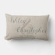 Presente rústico de aquecimento de casa ou casamento para um casal. Travesseiro decorativo personalizado em tons terrosos bege e azul com os nomes do casal e data. Celebre o relacionamento e adicione um sutil acento decorativo à casa. Cores neutras de aparência natural se encaixam em quase qualquer estilo de decoração de casa elegante e sofisticada, tornando este lindo travesseiro uma escolha de presente segura e sofisticada.