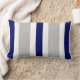 Travesseiro lombar cinzento do desenhista da listra dos azuis marinhos & do branco feito no presente de América de zazzle.com/americanmademojo*.