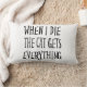 O último travesseiro decorativo para mães de gatos e amantes de gatos! Um travesseiro decorativo lumbar preto e branco reversível com uma tipografia divertida quando eu morrer O GATO recebe tudo em letras negrito e branco. A cor de fundo é personalizável. Basta clicar no botão "Personalizar!" e mudar para cada lado a cor preta ou branca para qualquer cor que você quiser no Gráfico "Cor de Fundo do Impressão". OBTÉM TUDO em letras negrito e branco.