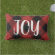 Xadrez de travesseiro decorativo ao ar livre, vermelho e preto, nas fazendas modernas, com inscrição JOY. Use as ferramentas de design para adicionar seu próprio texto e fotos e selecione em todos os nossos estilos de travesseiro para criar seu único e único design!