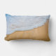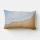 Travesseiro com uma fotografia de uma praia ouro marrom arenosa com surf branco de espuma.