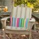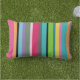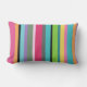 Listras vibrantes em tons de rosa, vermelho, amarelo, verde, roxo, preto, laranja, turquesa, e mais adornam este travesseiro lombar.