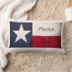 O travesseiro decorativo da bandeira do Texas com seu nome na cidade. Reversível, o outro lado é azul. Disponível em tamanhos diferentes.