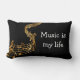 O tema musical clássico travesseiro com notas musicais douradas escala e texto que diz Música é Minha Vida. Projetado para um músico, um entusiasta da música, ou para dar este presente para o seu professor de música.