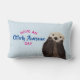 Um travesseiro lombar com uma lontra adorável segurando seu rosto em suas pequenas patas. O texto acima da cabeça diz: Tenha um dia completamente incrível. Um trocadilho bonito escrito em uma fonte de tipografia de tendência.