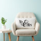 Adicione nomes de casais e data de casamento ao fundo do travesseiro decorativo "Sr. & Sra." preto e branco.