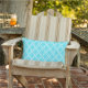 Este travesseiro decorativo de sotaque ao ar livre é mostrado com uma adorável turquesa e um design branco de impressão marroquino. Personalize este item ou comprar como está. Imagem do stock freepik.com