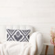 travesseiro do estilo Boho Padrão Branco do marinho. Frente escura, padrões brancos marinho completam este design. Uma bela adição a áreas vivas, quarto, salas frontais e muito mais.