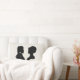 O travesseiro com as silhuetas do homem e da mulher e no verso é umas citações do "orgulho e do preconceito". As citações são da Sra. Darcy, dizer, "completamente e perfeitamente e incandescently feliz".