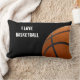 travesseiro lombar com tema de basquete com texto "Eu amo basquete" que você pode personalizar e dois designs lado a lado com foto de uma bola de basquete de verdade. Excelente presente para aquela cara que é duro a comprar, ou aquele fã de basquete que tem tudo.