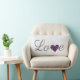 Uma imagem do linho branco faz o fundo para este travesseiro lombar bonito. A palavra "amor" está na rotulação cinzenta com um coração roxo no lugar do "V". Uma adição bonito para essa sala especial em sua casa.