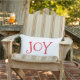 O travesseiro lombar exterior vermelho branco da alegria do Natal faz um grande acessório home da decoração para o pátio ou o sunroom durante os feriados. Descanse com branco contínuo na parte dianteira e na parte traseira e "alegria" 'na tipografia vermelha grande na parte anterior. Personalize cores se você deseja. Disponível em tamanhos e no material diferentes.