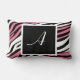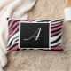 Na moda personalizado imprimiu um travesseiro lombar de 21" x 13" projetado com um padrão de impressão zebra preto-e-branco e colorido, personalizado com sua impressão inicial em branco sobre um quadrado preto.