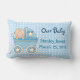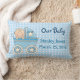Travesseiro bem-vindo do bebê para a chegada nova. Bebês bonitos do pinguim. Adicione facilmente seus nome e informação do nascimento. Uma lembrança verdadeira! Estes travesseiros podem ajudar a apoiar o bebê ao naturalmente alimentar.